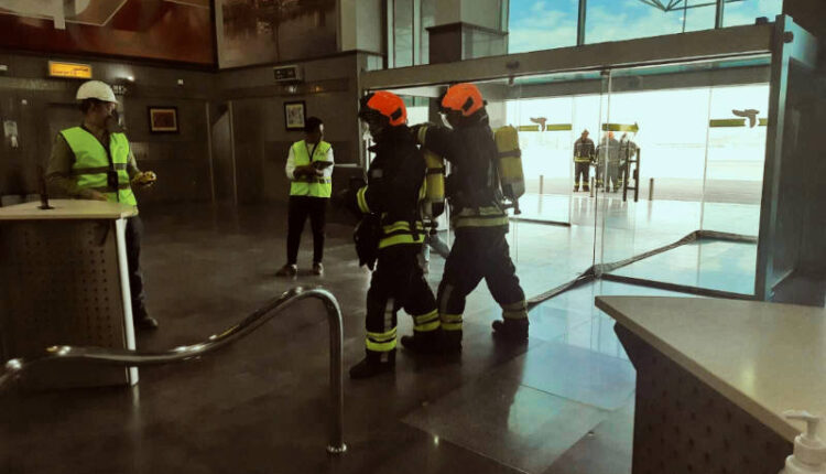 تضمنت التجربة اكتشاف خروج دخان من فتحات التكييف في صالة الوصول، مما أدى إلى إطلاق سارينة الإنذار وإبلاغ مركز العمليات الرئيسي والبدء في عملية إخلاء الصالة من الموظفين والركاب وفصل الكهرباء عن الصالة، والتعامل مع وجود بعض حالات الإغماء، وعلى الفور وصلت سيارات الدفاع المدني وسيارات الإسعاف وسيارات الحماية المدنية وبدء التعامل كلا فيما يخصه.