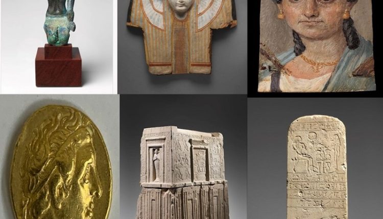 وأوضح الأستاذ شعبان عبد الجواد المشرف العام على إدارة الآثار المستردة بالمجلس الأعلى للآثار، أنه يأتي من بين القطع المستردة 6 قطع أثرية من متحف المتروبوليتان تم مصادرتها من قبل مكتب المدعي الأمريكي في مدينة منهاتن بنيويورك في القضية الكبرى التي شملت تهريب عدد من القطع الأثرية إلى الولايات المتحدة الأمريكية وفرنسا ومازالت التحقيقات مستمرة بها في فرنسا، وتضمنت القطع جزء من تابوت خشبي مغطى بطبقة من الجص الملون يصور وجه سيدة، ولوحة من الحجر الجيري عليها نقوش من الكتابة الهيروغليفية ومنظر لتقدمة القرابين، وقطعة من من الكتان مزينة برسومات ملونة تحكي قصة عبور البحر الأحمر من سفر الخروج مقسمة إلى خمسة قطع صغيرة، وتمثال من البرونز لرجل راكع على ركبتيه، ومقصورة من الحجر الجيري المزين بنقوش ملونة لشخص يدعى “كيميس” والذي كان يحمل لقب كبير الموسيقيين، ولوحة جنائزية من بورتريهات الفيوم تصور سيدة من العصر الروماني.