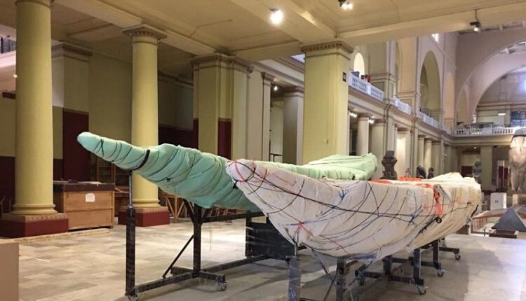 وأكد الدكتور علي عمر رئيس اللجنة العليا لسيناريو العرض المتحفي، إن تلك القطع شملت مركبتي دهشور الخشبية وتمثال لقرد البابون واقفا في وضع التهليل لشروق الشمس، مشيرا إلى أن المراكب يبلغ طولها أكثر من 10 أمتار وعرضها 2,30 م، وهي تخص الملك سنوسرت الثالث من الدولة الوسطى. ومن المقرر ان يتم عرضهما داخل قاعة مخصصة لهما بداخل المتحف.