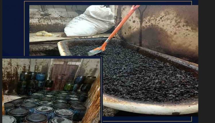هذا وقد تم العثور بداخل المصنع المشار إليه علي “1٫050 طن عسل صناعي و900 كيلو جرام معسل و60 كيلو تبغ خام  و15 قطعة مستلزمات إنتاج” جميعها مجهولة المصدر ومهربة جمركيا وغير مصحوبة بمستندات تدل علي مصدرها.