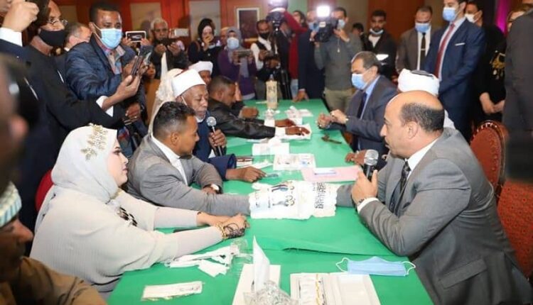 هذا وقد شارك محمد سعفان “وزير القوي العاملة” واللواء أشرف عطية “محافظ أسوان” في افعاليات بصفتهما كوكيلين لعروستين في مراسم عقد القران، حيث يعبر هذا المشهد الإنساني الرفيع باحتضان الدولة للفتيات ومشاركتهن أفراحهن علي مستوي الأهل ولأحباب .