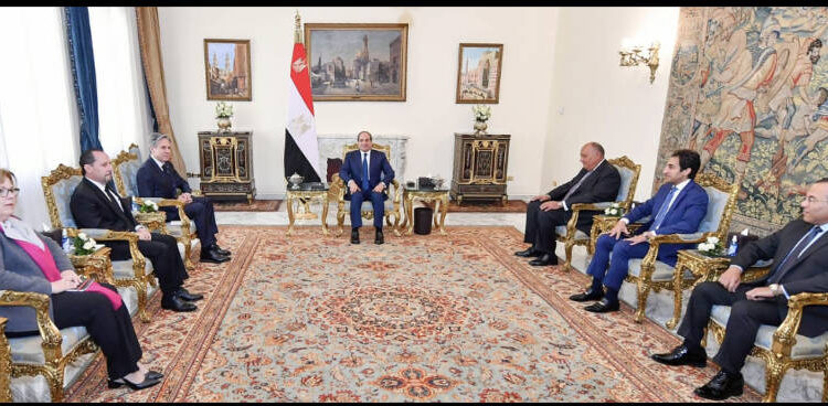 وقال المتحدث الرسمي باسم رئاسة الجمهورية إن الرئيس أعرب عن ترحيبه بلقاء وزير الخارجية الأمريكي، ناقلا تحياته إلى الرئيس “جو بايدن”، مؤكدا على علاقات الشراكة الاستراتيجية الممتدة بين مصر والولايات المتحدة، والتطلع لتعزيز التنسيق والتشاور بين الجانبين بشأن مختلف الملفات السياسية والأمنية وقضايا المنطقة.