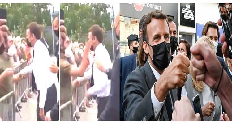 واثناء حشد من التجمع الذي وقف لتحية إيمانويل ماكرون، الرئيس الفرنسي، الذي مد يده لمصافحة شاب يرتدي قميص اخضر ونظارة وكمامة لمصافحته، اذ بالشاب يمسك بيده ويصفع ماكرون صفعة قوية علي وجهه، ويهتف صارخا “تسقط الماكرونية” وردد عبارات كانت تعتبر صرخة معركة الجيوش الفرنسية عندما كانت فرنسا مازالت ملكية.