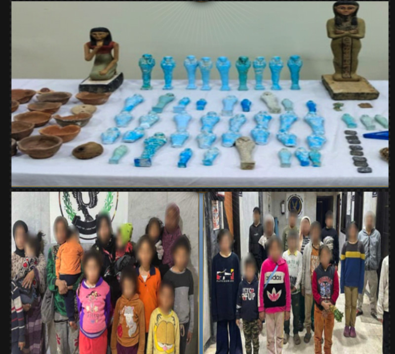 واصلت أجهزة وزارة الداخلية جهودها لمكافحة جرائم استغلال الأطفال والاتجار غير المشروع في الآثار، حيث تمكنت من ضبط عدد من المتورطين في وقائع منفصلة بالقاهرة والجيزة وأسيوط.