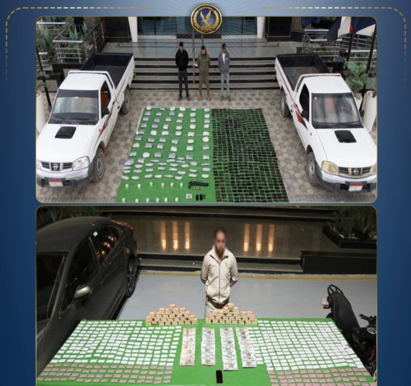 وأفادت معلومات وتحريات قطاعي الأمن العام ومكافحة المخدرات والأسلحة والذخائر غير المرخصة بتورط بؤر إجرامية تضم عناصر شديدة الخطورة في عدة محافظات في جلب كميات كبيرة من المخدرات والأسلحة تمهيداً لترويجها.