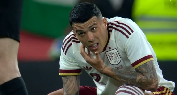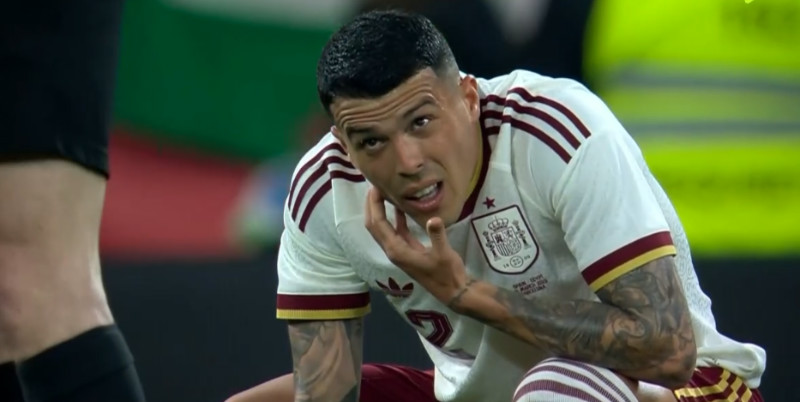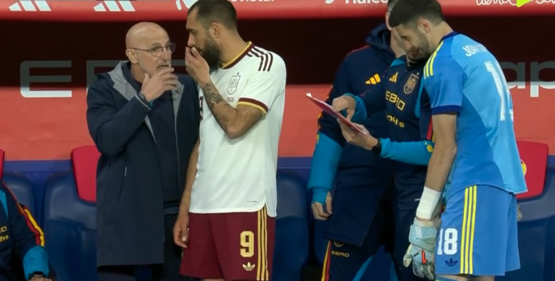 وبعدها بدقائق، حرمت العارضة المنتخب الإسباني من هدف محقق في الدقيقة 87، إثر تسديدة قوية من أليخاندرو جريمالدو من ركلة حرة مباشرة.
